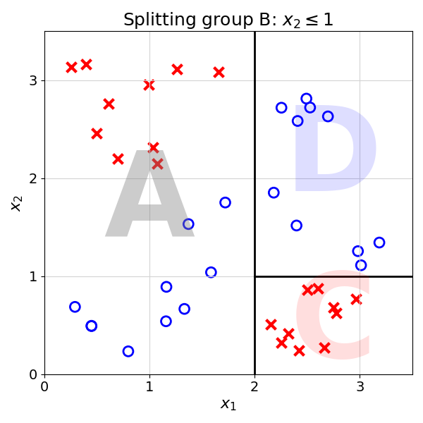 Splits B into Groups C and D