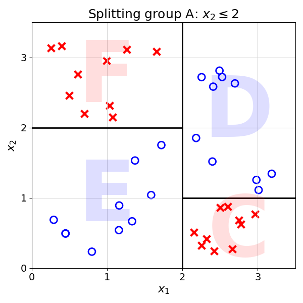 Best split is found at x2 = 2